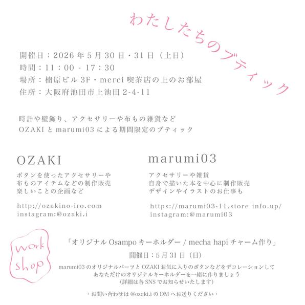 OZAKIとmarumi03による2日間の期間限定ブティックを開きます